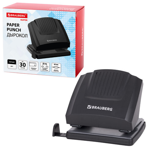Дырокол BRAUBERG "SUPER", до 30 листов, черный, 272744