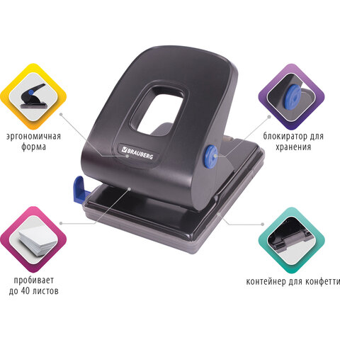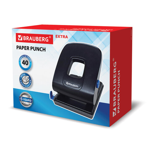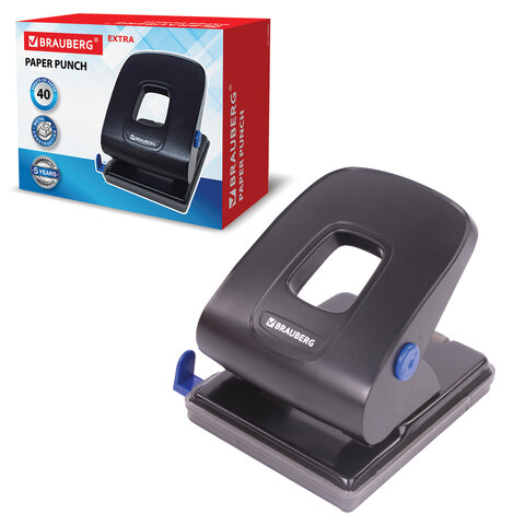 Дырокол металлический BRAUBERG "Extra", до 40 листов, черный, 229093