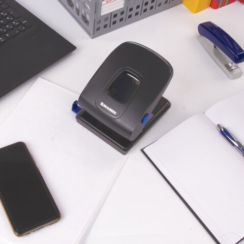 Дырокол BRAUBERG "Extra" – это необходимый офисный предмет, с помощью которого можно аккуратно пробивать отверстия в бумаге и затем подшивать документы в папку.