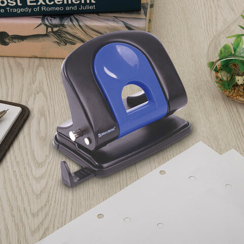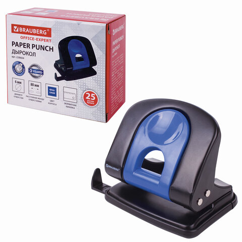 Дырокол металлический BRAUBERG "Office-Expert", до 25 листов, черно-синий, 228604
