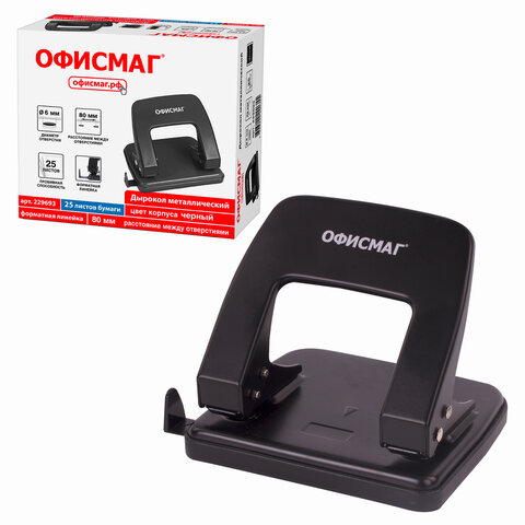 Дырокол металлический ОФИСМАГ, до 25 листов, черный, 229693
