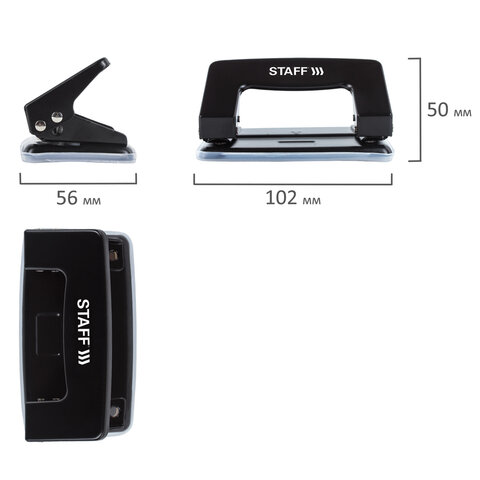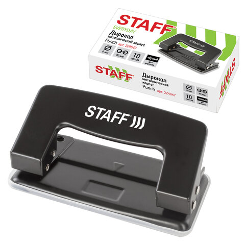 Дырокол металлический STAFF "EVERYDAY,", до 10 листов, без линейки, черный, 224647