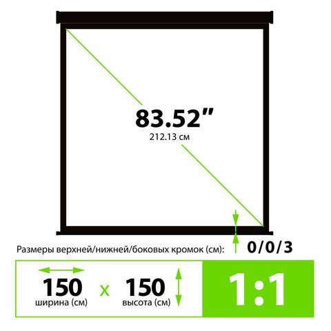 Размер экрана 150х150 см