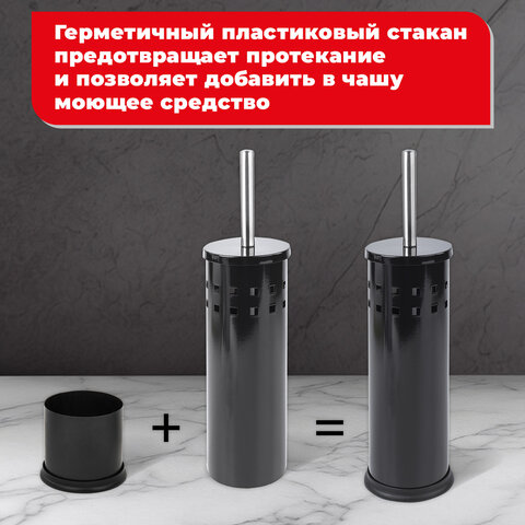 Ершик для унитаза с подставкой, металл, черный, глянцевый, LAIMA, 604960