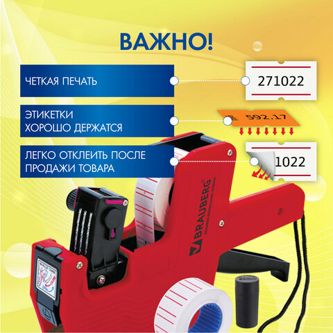 Однострочный этикет-пистолет BRAUBERG предназначен для нанесения на этикетки цифр и символов (руб., $, Арт., кг).