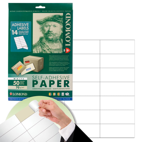 Этикетка самоклеящаяся 105х42,3 мм, 14 этикеток, белая, 70 г/м2, 50 листов, LOMOND, 2100095