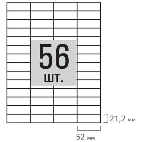 Этикетка самоклеящаяся 52,5х21,2 мм, 56 этикеток, белая, 80 г/м2, 100 листов, STAFF, 115187