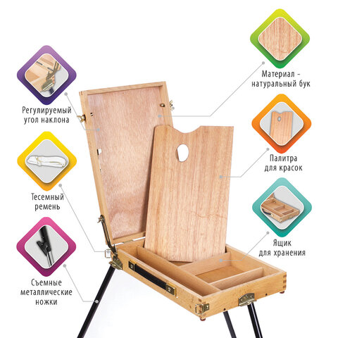 Этюдник BRAUBERG ART CLASSIC, бук, 40х25х7,5см, высота холста 70см, ножки метал 90см, ремень,190655