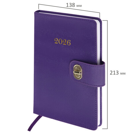 Ежедневник датированный 2026 А5 138х213 мм, BRAUBERG "Elegant", под кожу, застежка, фиолетовый, 117370