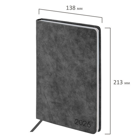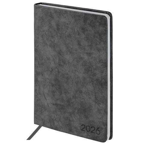 Ежедневник датированный 2026 А5 138х213 мм, BRAUBERG "Ice", под кожу, черный, 117393
