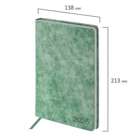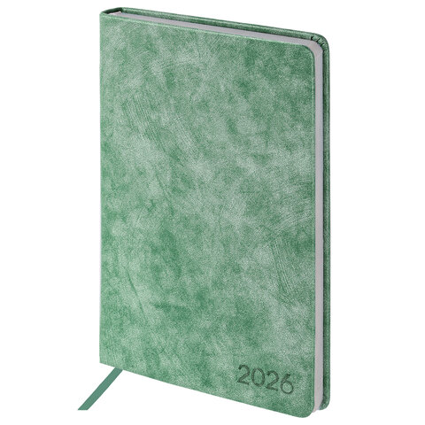 Ежедневник датированный 2026 А5 138х213 мм, BRAUBERG "Ice", под кожу, темно-зеленый, 117391