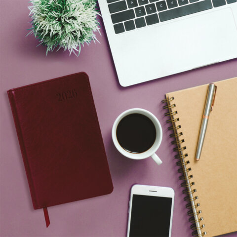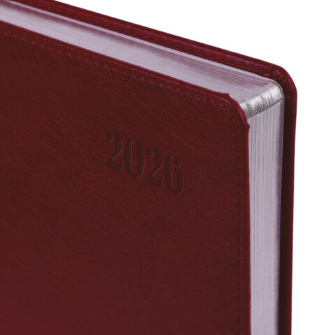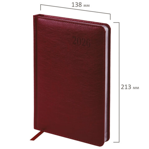Ежедневник датированный 2026, А5, 138х213 мм, BRAUBERG "Impression", под кожу, бордовый, 117512