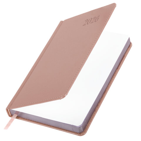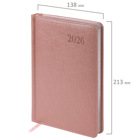 Ежедневник датированный 2026, А5, 138х213 мм, BRAUBERG "Impression", под кожу, розовый, 117514