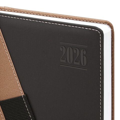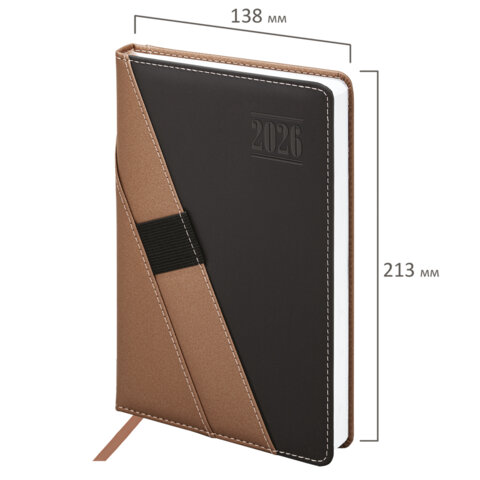 Ежедневник датированный 2026, А5, 138х213 мм, BRAUBERG "Swirl", под кожу, держатель для ручки, коричневый, 117480