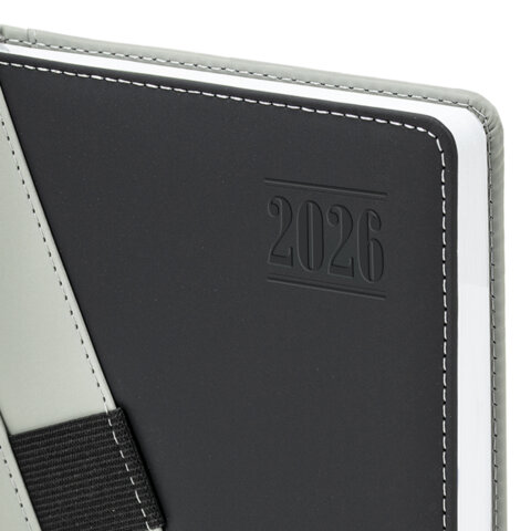 Ежедневник датированный 2026, А5, 138х213 мм, BRAUBERG "Swirl", под кожу, держатель для ручки, серый, 117482