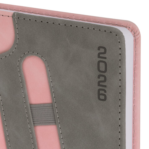 Ежедневник датированный 2026, А5, 138x213 мм, BRAUBERG "Assistant", под кожу, держатель, розовый, 117377