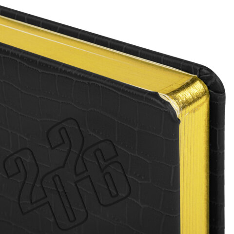 Ежедневник датированный 2026, А5, 138x213 мм, BRAUBERG "Comodo", под кожу, черный, 117049