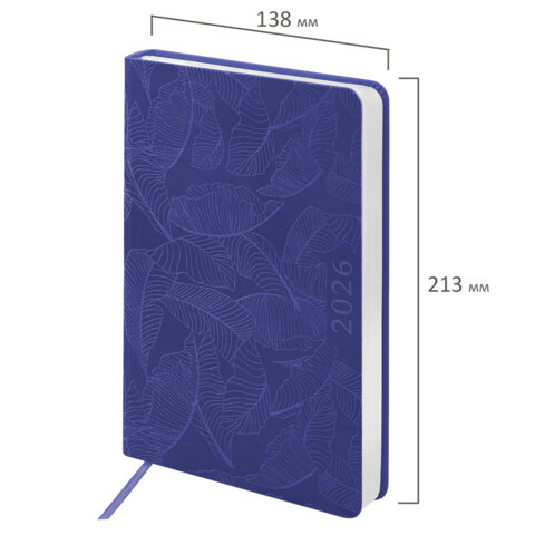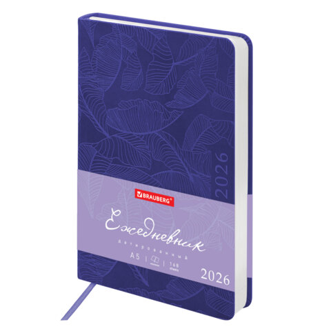 Ежедневник датированный 2026 А5 138x213 мм, BRAUBERG "Foliage", под кожу, гибкий, сиреневый, 117131