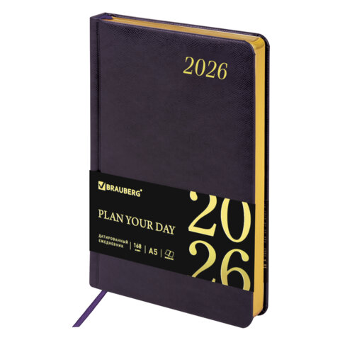 Ежедневник датированный 2026 А5 138x213 мм, BRAUBERG "Iguana", под кожу, темно-фиолетовый, 117059
