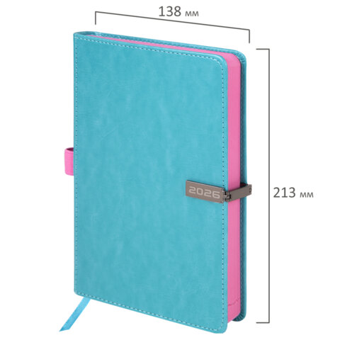 Ежедневник датированный 2026 А5 138x213 мм, BRAUBERG "Inspiration", под кожу, цветной срез, бирюза, 117476