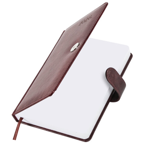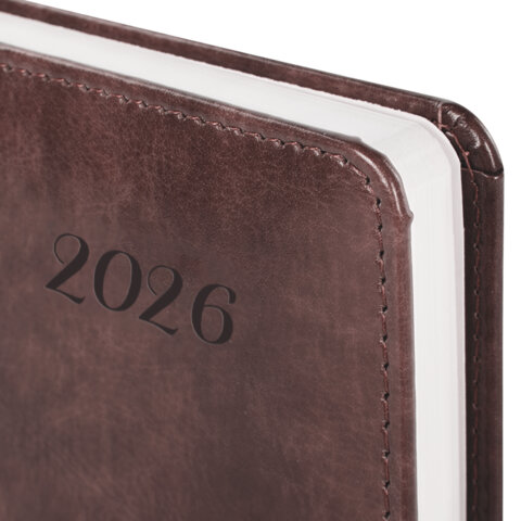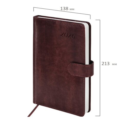 Ежедневник датированный 2026 А5 138x213 мм, BRAUBERG "Legend", под кожу, застежка, коричневый, 117071
