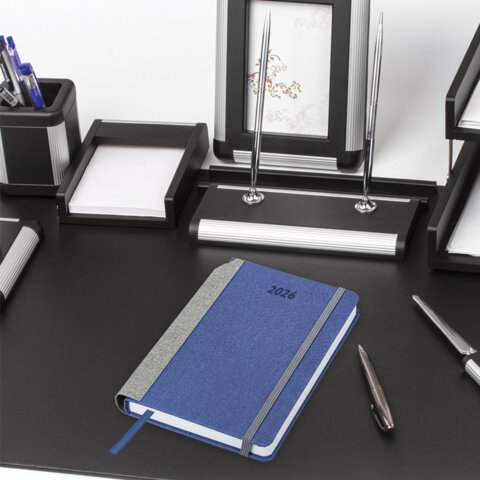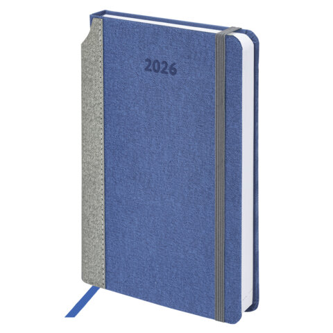 Ежедневник датированный 2026 А5 138x213 мм, BRAUBERG "Mosaic", под кожу, карман для ручки, синий, 117112