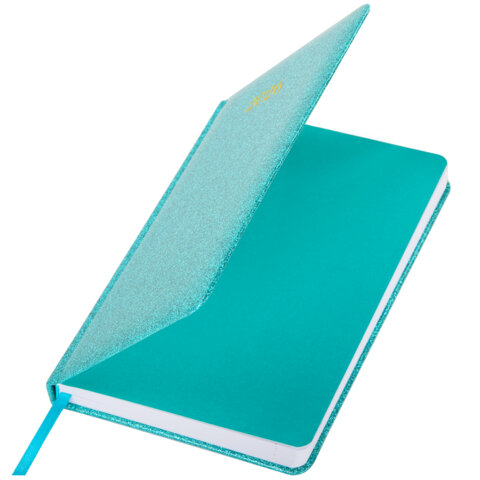Ежедневник датированный 2026, А5, 138x213 мм, BRAUBERG "Sparkle", под кожу, блестки, бирюзовый, 117439