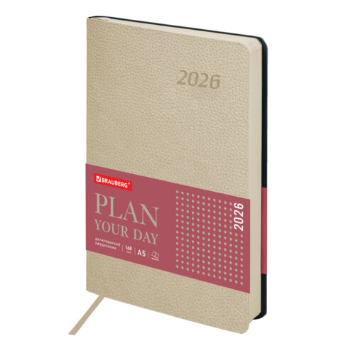 Ежедневник датированный 2026 А5 138x213 мм, BRAUBERG "Stylish", под кожу, гибкий, бежевый, 117104