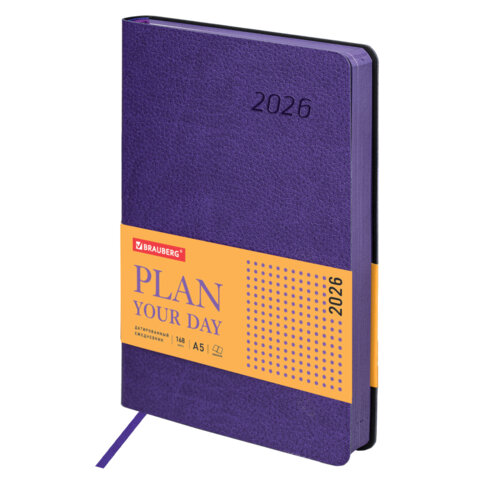 Ежедневник датированный 2026 А5 138x213 мм, BRAUBERG "Stylish", под кожу, гибкий, фиолетовый, 117100