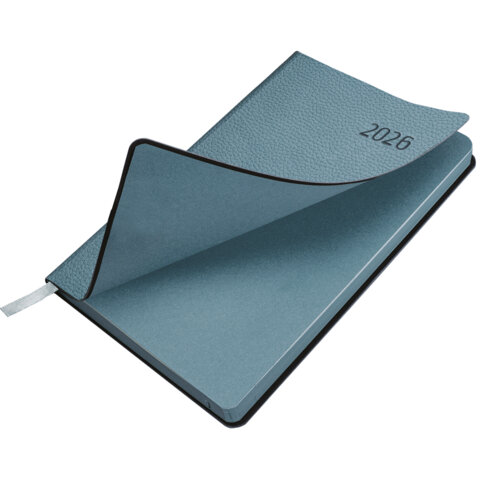 Ежедневник датированный 2026 А5 138x213 мм, BRAUBERG "Stylish", под кожу, гибкий, серо-голубой, 117105