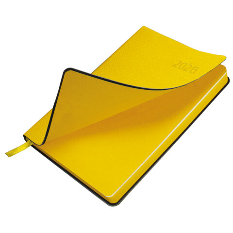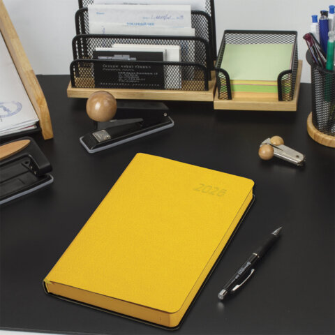 Ежедневник датированный 2026 А5 138x213 мм, BRAUBERG "Stylish", под кожу, гибкий, желтый, 117101