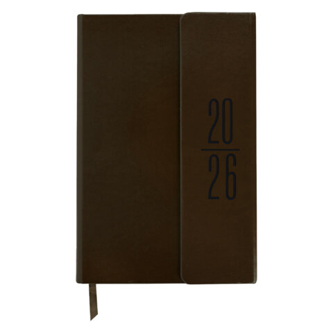 Ежедневник датированный 2026, А5, 138x213 мм, BRAUBERG "Towny", под кожу, клапан, коричневый, 117041