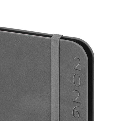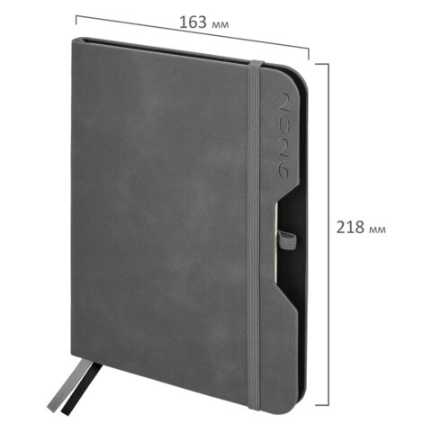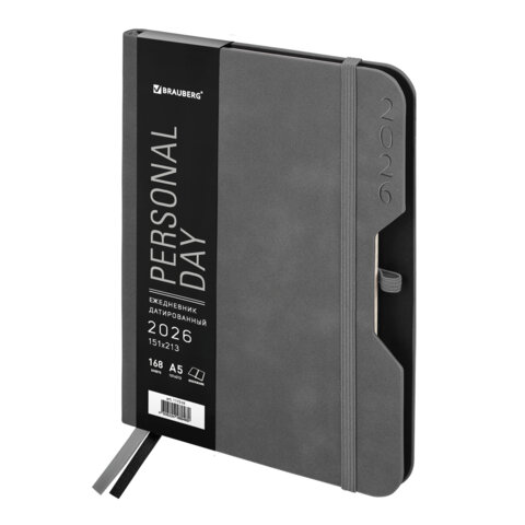 Ежедневник датированный 2026, А5, 151х213 мм, BRAUBERG "Note", под кожу, держатель для ручки, серый, 117519