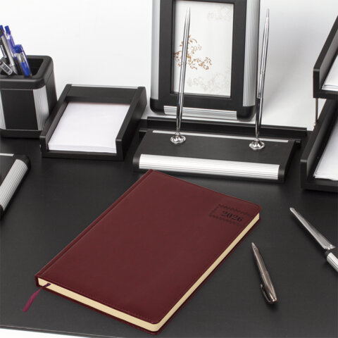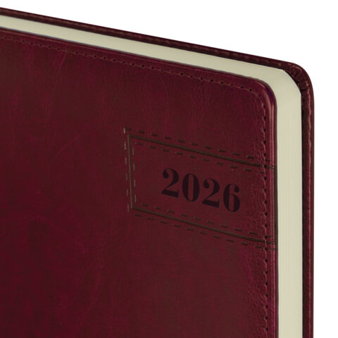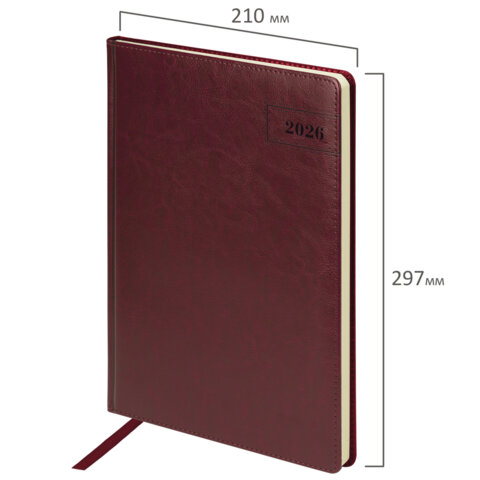 Ежедневник датированный 2026 БОЛЬШОЙ ФОРМАТ 210х297 мм, А4, BRAUBERG "Imperial", под кожу, бордо, 117248
