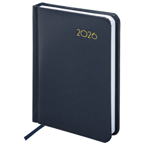 Ежедневник датированный 2026, МАЛЫЙ ФОРМАТ 100х150 мм, А6, BRAUBERG "Select", балакрон, темно-синий, 117259