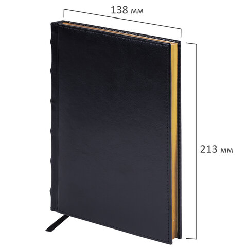 Ежедневник недатированный А5 138х213 мм BRAUBERG "FLAME", под кожу, 160 л., черный, золотой срез, 113426