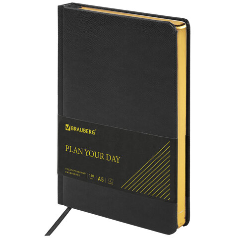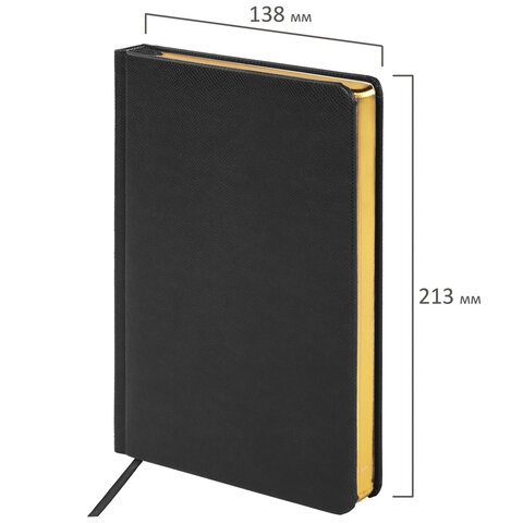 Ежедневник недатированный А5, 138х213 мм, BRAUBERG "Iguana" под кожу, 160 л., черный, 125089