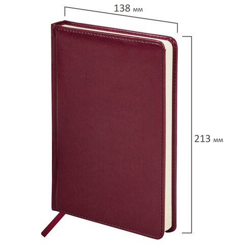 Ежедневник недатированный А5 138х213 мм BRAUBERG "Imperial" под кожу, 160 л., бордовый, 123415