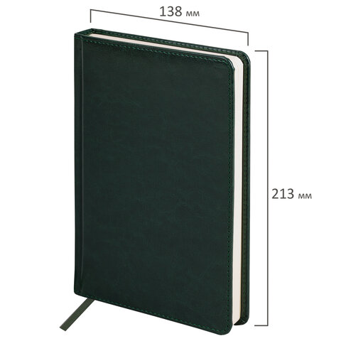 Ежедневник недатированный А5 138х213 мм BRAUBERG "Imperial" под кожу, 160 л., темно-зеленый, 111855