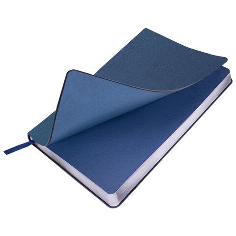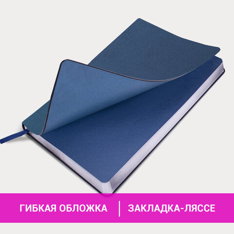 Ежедневник недатированный А5 138х213 мм BRAUBERG "Metallic", под кожу, 136 л., гибкий, синий, 113376
