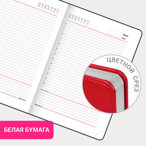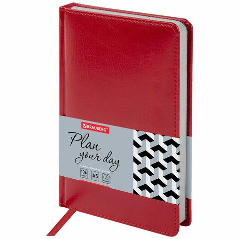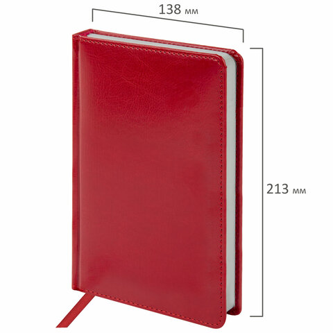 Ежедневник недатированный А5 138х213 мм BRAUBERG "Rainbow" под кожу, 136 л., красный, 111667