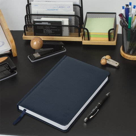 Ежедневник недатированный А5 (138х213 мм) BRAUBERG "Select", балакрон, 160 л., темно-синий, 123430