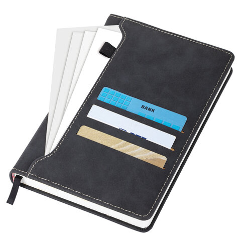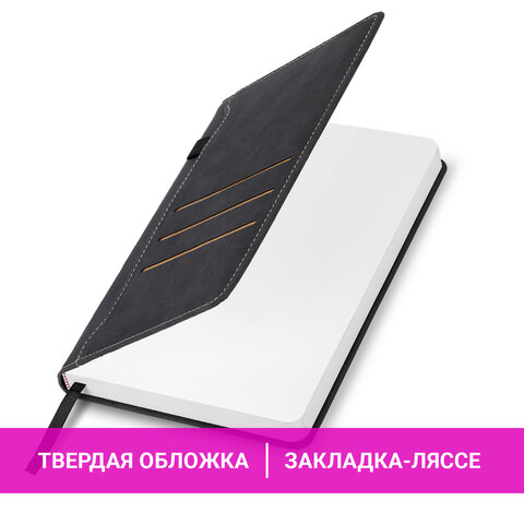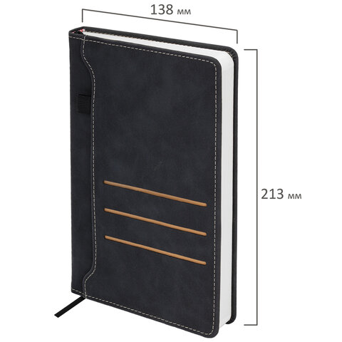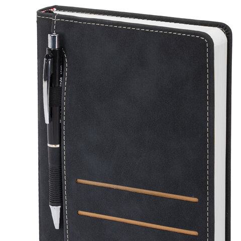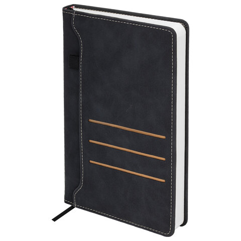 Ежедневник недатированный А5 138х213 мм, BRAUBERG "Slot", под кожу, держатель для ручки, 160 листов, черный, 116605