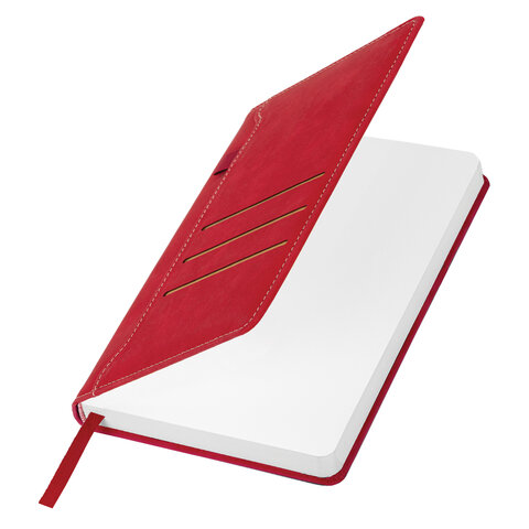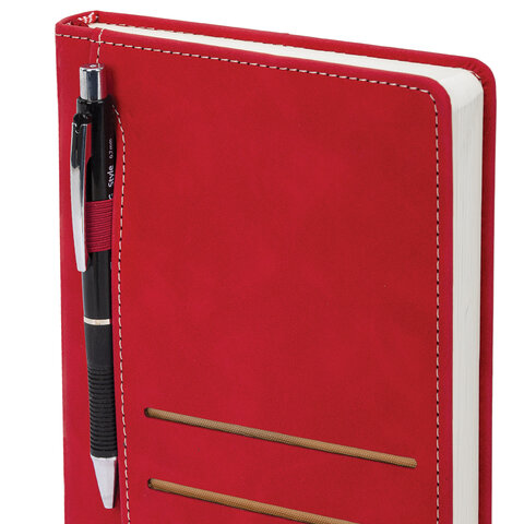 Ежедневник недатированный А5 138х213 мм, BRAUBERG "Slot", под кожу, держатель для ручки, 160 листов, красный, 116606
