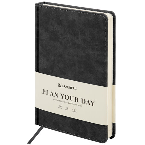 Ежедневник недатированный А5 138х213 мм BRAUBERG "Status" под кожу, 160 л., черный, 113361