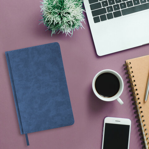 Ежедневник недатированный А5 138х213 мм BRAUBERG "Status", под кожу, 160 л., темно-синий, 113362