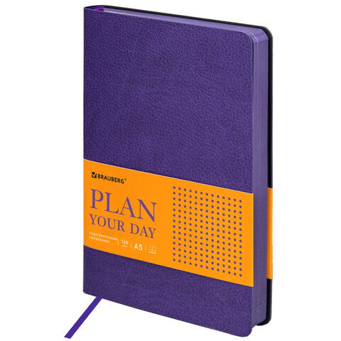 Ежедневник недатированный А5 (138х213 мм) BRAUBERG "Stylish", кожзам, гибкий, 160 л., фиолетовый, 111861