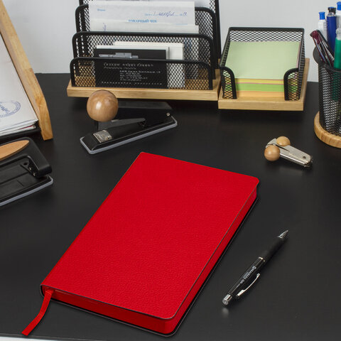 Ежедневник недатированный А5 (138х213 мм) BRAUBERG "Stylish", кожзам, гибкий, 160 л., красный, 111865