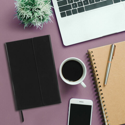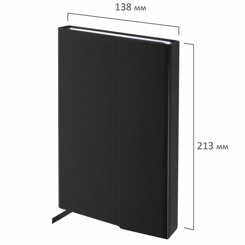 Ежедневник недатированный А5 138х213 мм BRAUBERG "Towny" под кожу, магнитный клапан 160 л., черный, 123785