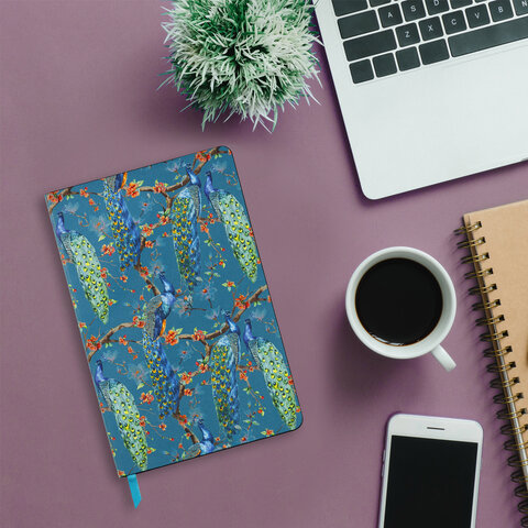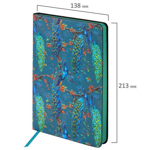 Ежедневник недатированный А5 (138х213 мм), BRAUBERG VISTA, под кожу, гибкий, 136 л., "Peacocks", 112032